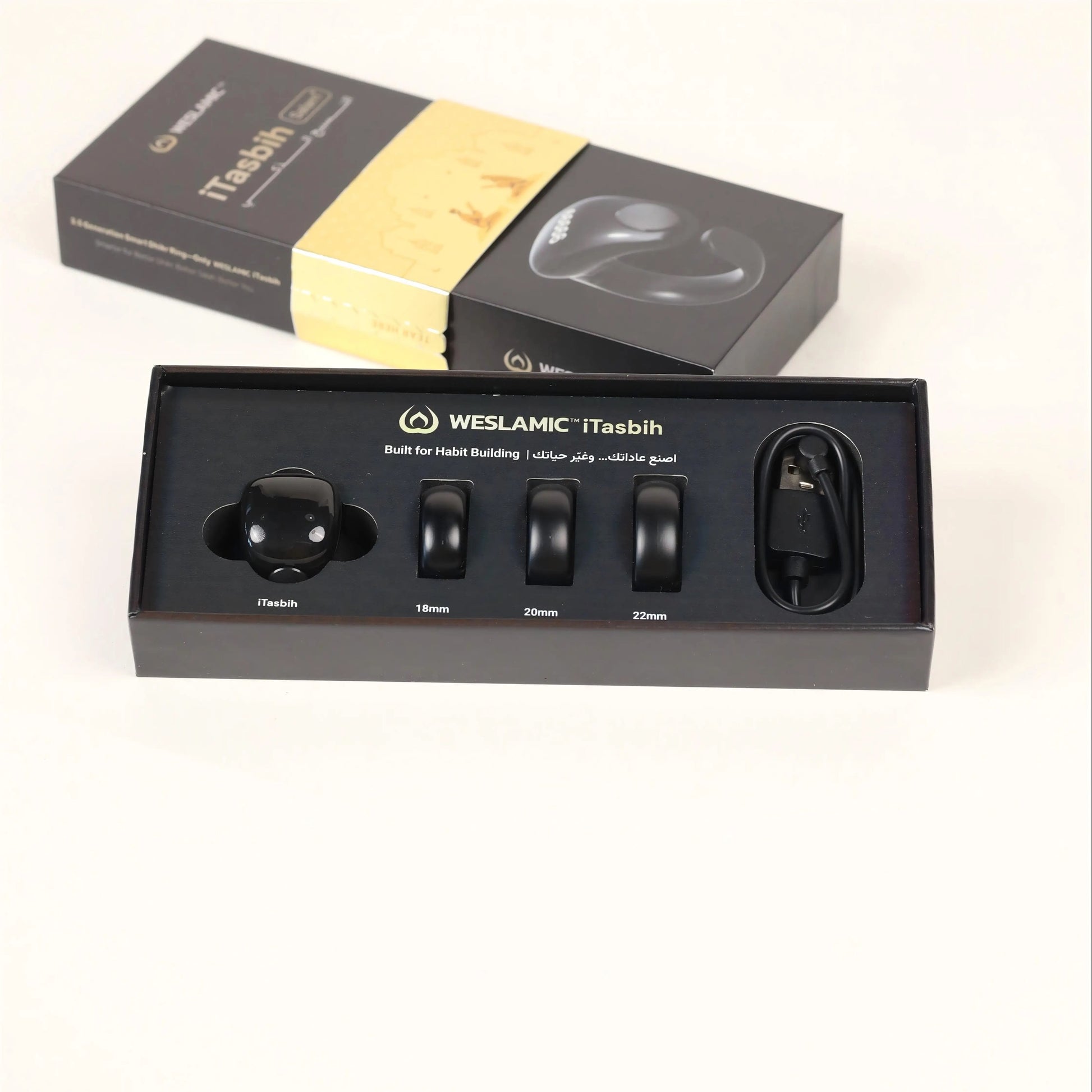 Tasbeeh Zikr Ring: Votre Compagnon de Prière Pratique et PortableEmportez votre compteur de prière partout avec vous grâce à sa taille ajustable. Sa conception étanche et durable le rend parfait pour une utilisation quotidienne, et sa recharge magnétique le rend pratique et écologique. Ne manquez jamais vos moments de zikr avec ce compagnon de prière idéal.